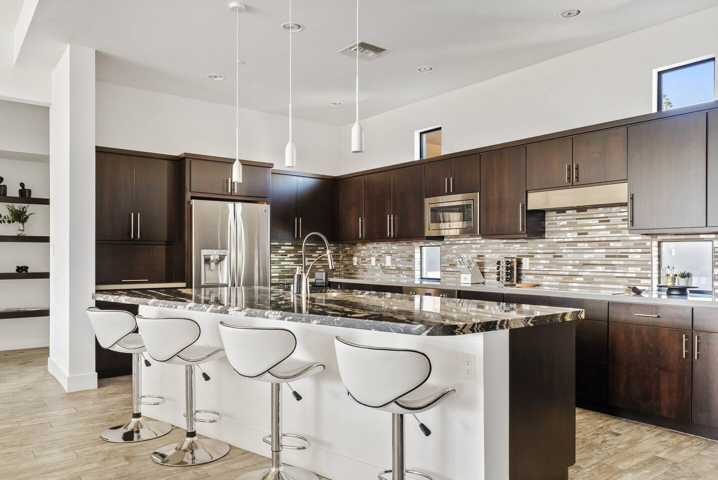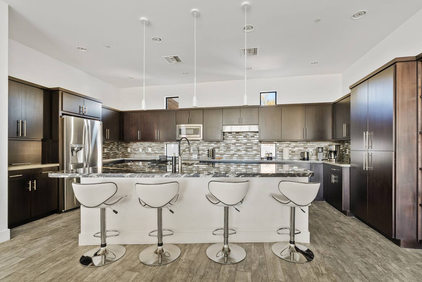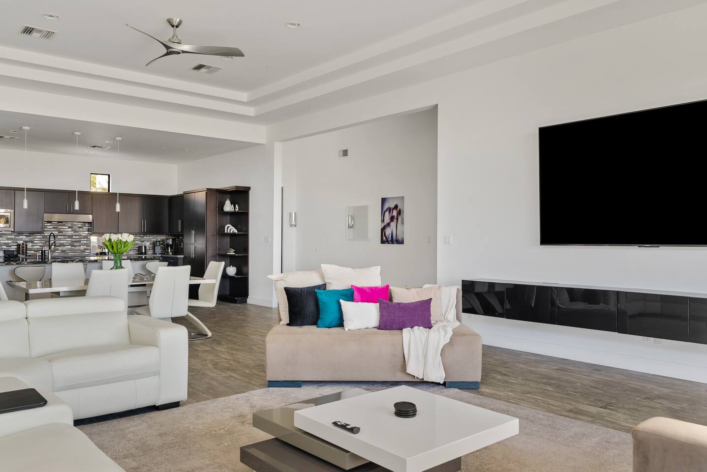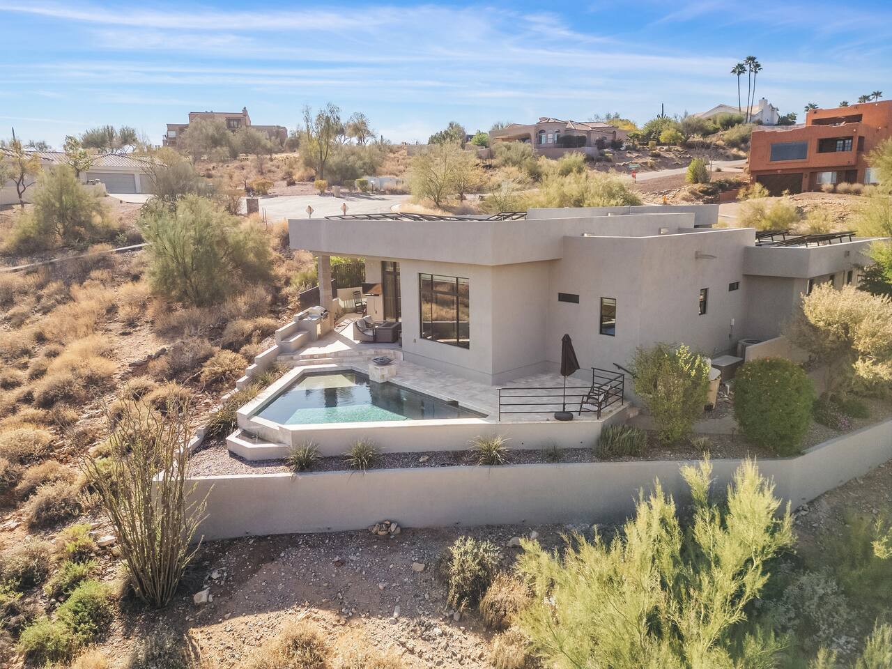 Escape to this stunning 3-bedroom, 2.5-bath contemporary retreat in Fountain Hills. Relax by the sparkling heated pool, rejuvenate in the cold plunge, and soak in breathtaking mountain and desert views. With a king bed and two queens, it’s perfect for families or groups. Enjoy the fully stocked kitchen, stylish decor, and proximity to Fountain Park, hiking trails, golf courses, and Scottsdale just 20min away! The views are spectacular, you can see the Fountain hills fountain!