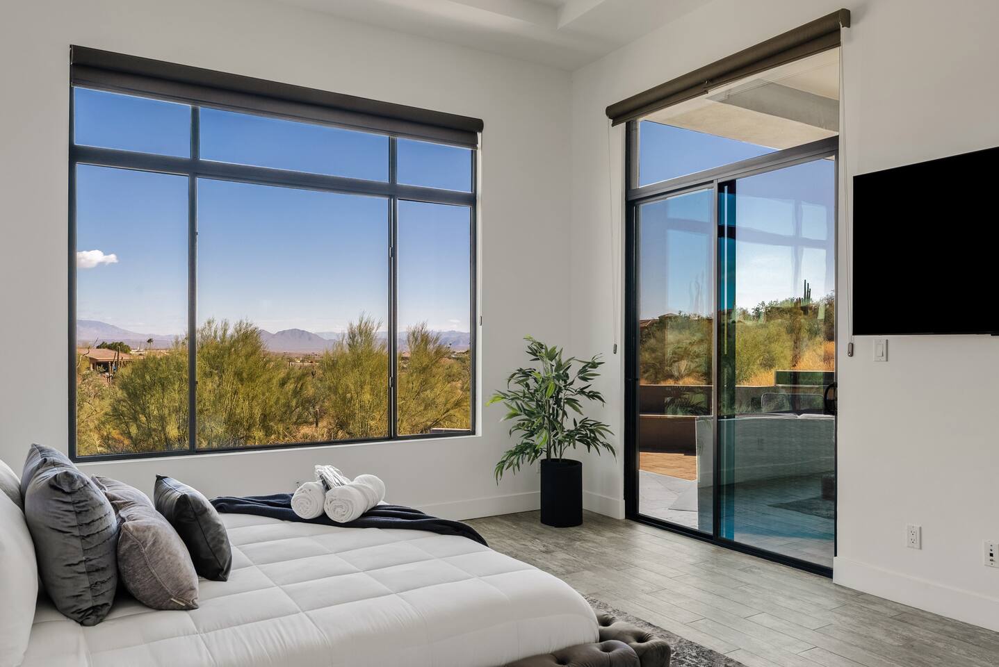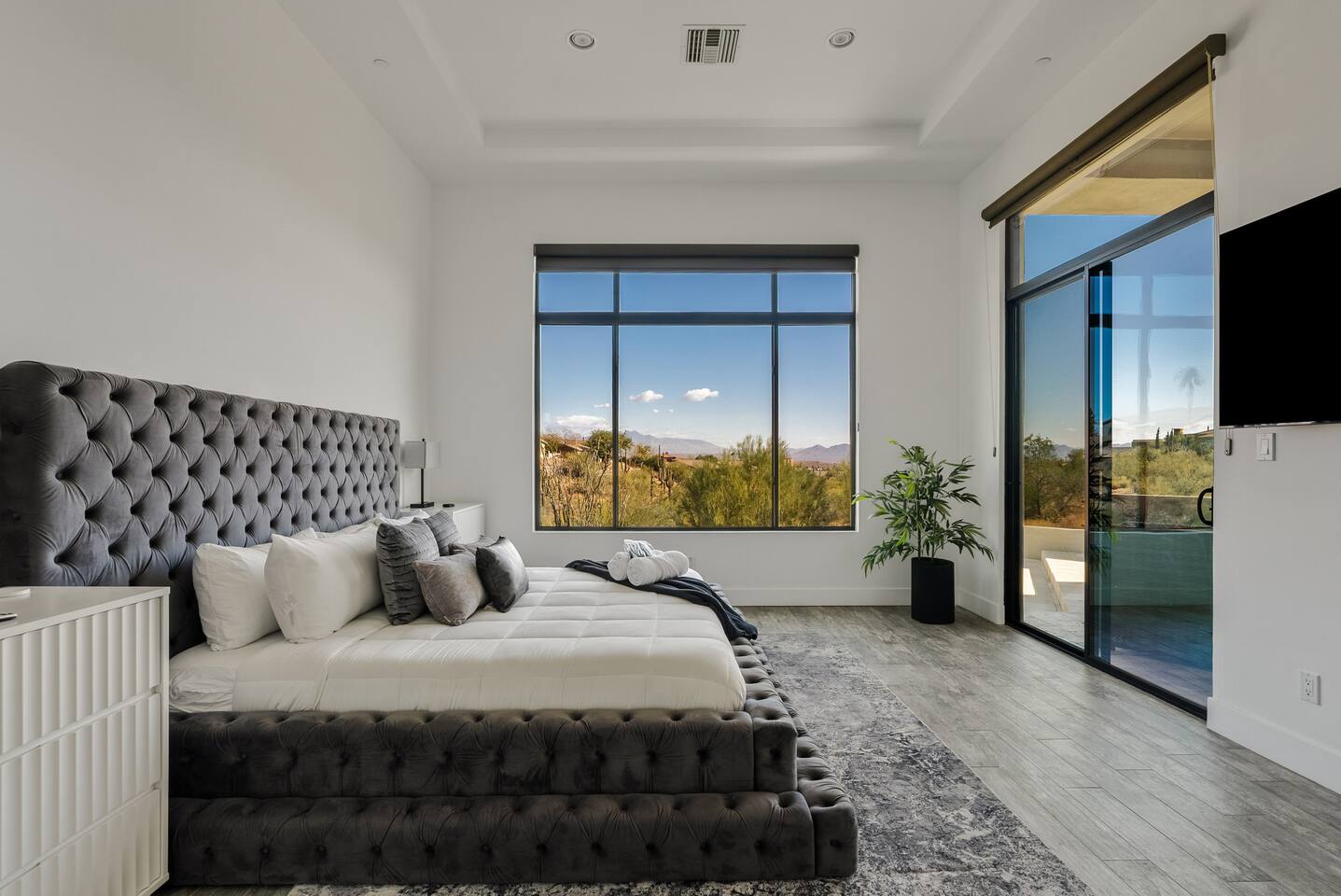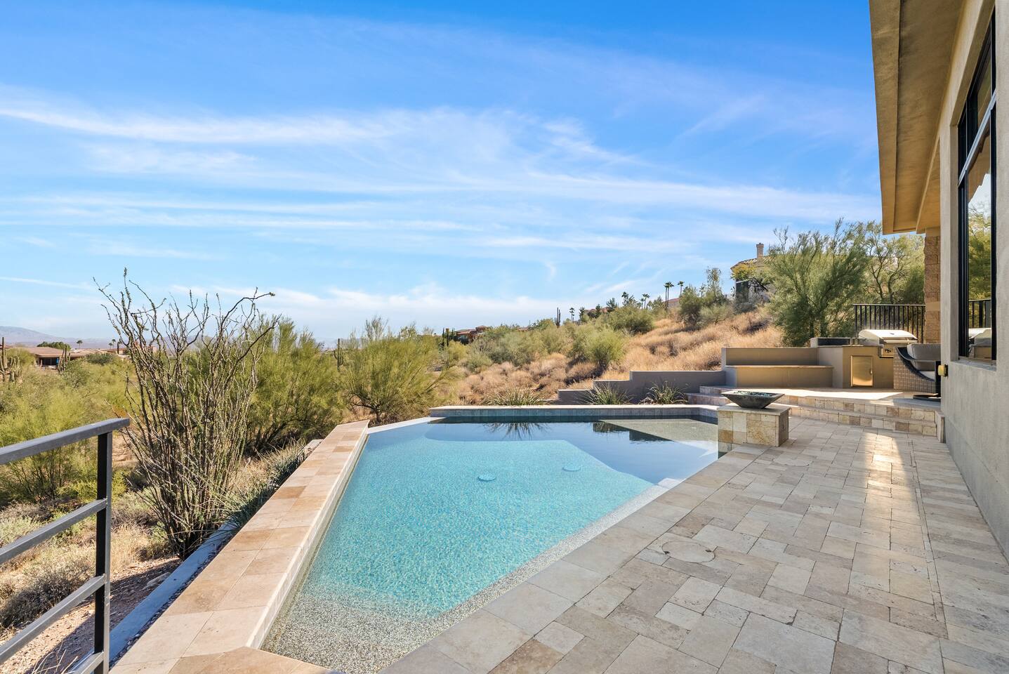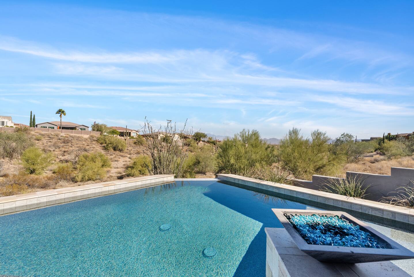 Welcome to your serene desert getaway! This contemporary 3-bedroom, 2.5-bathroom home in beautiful Fountain Hills offers a luxurious escape with breathtaking views of the surrounding mountains and Sonoran desert. Relax, unwind, and enjoy the perfect blend of modern comfort and natural beauty. Only 20 min to Scottsdale, you can also see the fountain hills fountain, one of the world’s tallest man-made fountains. The Space • 3 Spacious Bedrooms: • Master Bedroom: King Bed • Bedroom 2 & 3: Queen Beds • 2.5 Bathrooms: Well-appointed and modern, with plush towels and essential toiletries. • Chef’s Kitchen: Fully equipped with stainless steel appliances, ample counter space, and everything you need to prepare meals. • Living & Dining: Bright, open spaces with contemporary furnishings, perfect for relaxing or entertaining. • Outdoor Oasis: • Sparkling pool for daytime dips and evening swims. • Invigorating cold plunge for ultimate relaxation and rejuvenation. • Spacious patio with comfortable seating and unobstructed views of the desert and mountains. Amenities • High-speed Wi-Fi • Smart TVs in the living room and all bedrooms • Central air conditioning/ mini splits • Washer and dryer Location Highlights Nestled in the heart of Fountain Hills, this home is ideally located for exploring all the area has to offer: • Fountain Park: Just a 5-minute drive to see the world-famous fountain and enjoy walking trails, playgrounds, and picnic areas. • Hiking & Outdoor Adventures: Close to McDowell Mountain Regional Park and the Desert Sonoran Preserve. • Golfing: Tee off at renowned courses like SunRidge Canyon Golf Club and Eagle Mountain Golf Club. • Dining & Shopping: Discover local eateries, boutiques, and galleries in downtown Fountain Hills. • Day Trips: • 20 minutes to Scottsdale for upscale dining and shopping. • 40 minutes to Phoenix Sky Harbor Airport. Why You’ll Love It This home offers the ultimate retreat with its stylish design, peaceful ambiance, and luxurious amenities. Whether you’re looking to explore the desert, relax by the pool, or spend quality time with loved ones, this is the perfect place to call home during your stay. Book now to secure your dates for this unforgettable experience!