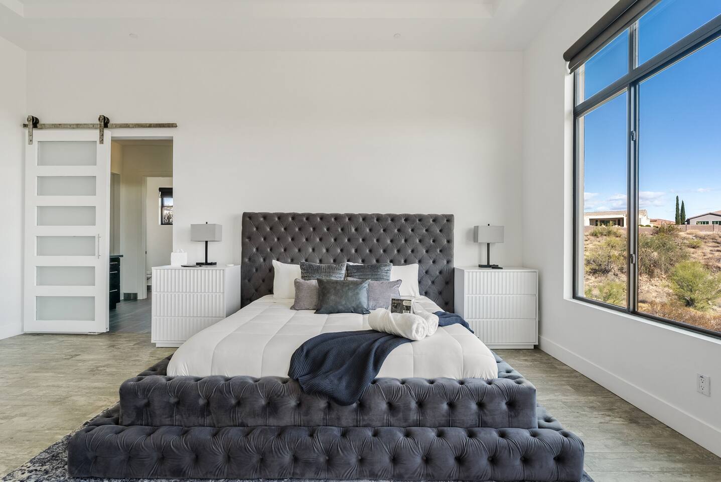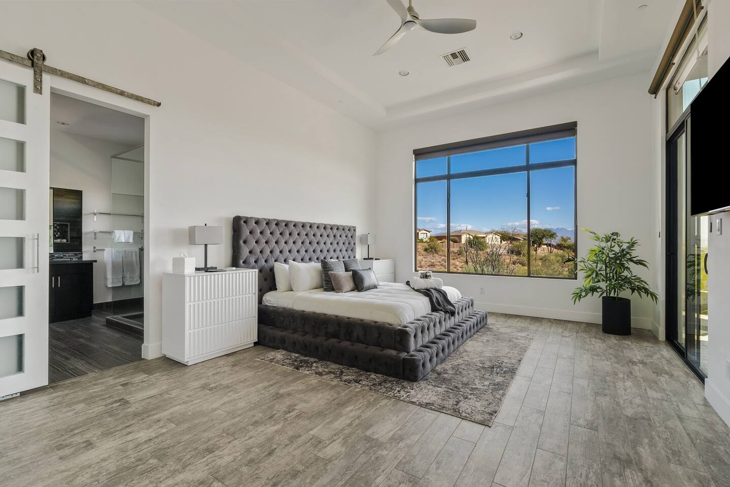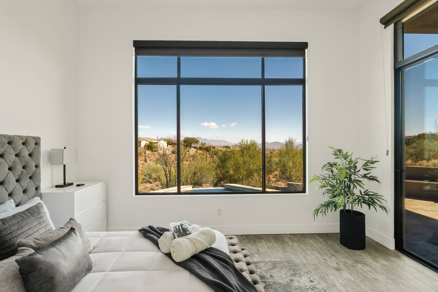 Welcome to your serene desert getaway! This contemporary 3-bedroom, 2.5-bathroom home in beautiful Fountain Hills offers a luxurious escape with breathtaking views of the surrounding mountains and Sonoran desert. Relax, unwind, and enjoy the perfect blend of modern comfort and natural beauty. Only 20 min to Scottsdale, you can also see the fountain hills fountain, one of the world’s tallest man-made fountains. The Space • 3 Spacious Bedrooms: • Master Bedroom: King Bed • Bedroom 2 & 3: Queen Beds • 2.5 Bathrooms: Well-appointed and modern, with plush towels and essential toiletries. • Chef’s Kitchen: Fully equipped with stainless steel appliances, ample counter space, and everything you need to prepare meals. • Living & Dining: Bright, open spaces with contemporary furnishings, perfect for relaxing or entertaining. • Outdoor Oasis: • Sparkling pool for daytime dips and evening swims. • Invigorating cold plunge for ultimate relaxation and rejuvenation. • Spacious patio with comfortable seating and unobstructed views of the desert and mountains. Amenities • High-speed Wi-Fi • Smart TVs in the living room and all bedrooms • Central air conditioning/ mini splits • Washer and dryer Location Highlights Nestled in the heart of Fountain Hills, this home is ideally located for exploring all the area has to offer: • Fountain Park: Just a 5-minute drive to see the world-famous fountain and enjoy walking trails, playgrounds, and picnic areas. • Hiking & Outdoor Adventures: Close to McDowell Mountain Regional Park and the Desert Sonoran Preserve. • Golfing: Tee off at renowned courses like SunRidge Canyon Golf Club and Eagle Mountain Golf Club. • Dining & Shopping: Discover local eateries, boutiques, and galleries in downtown Fountain Hills. • Day Trips: • 20 minutes to Scottsdale for upscale dining and shopping. • 40 minutes to Phoenix Sky Harbor Airport. Why You’ll Love It This home offers the ultimate retreat with its stylish design, peaceful ambiance, and luxurious amenities. Whether you’re looking to explore the desert, relax by the pool, or spend quality time with loved ones, this is the perfect place to call home during your stay. Book now to secure your dates for this unforgettable experience!