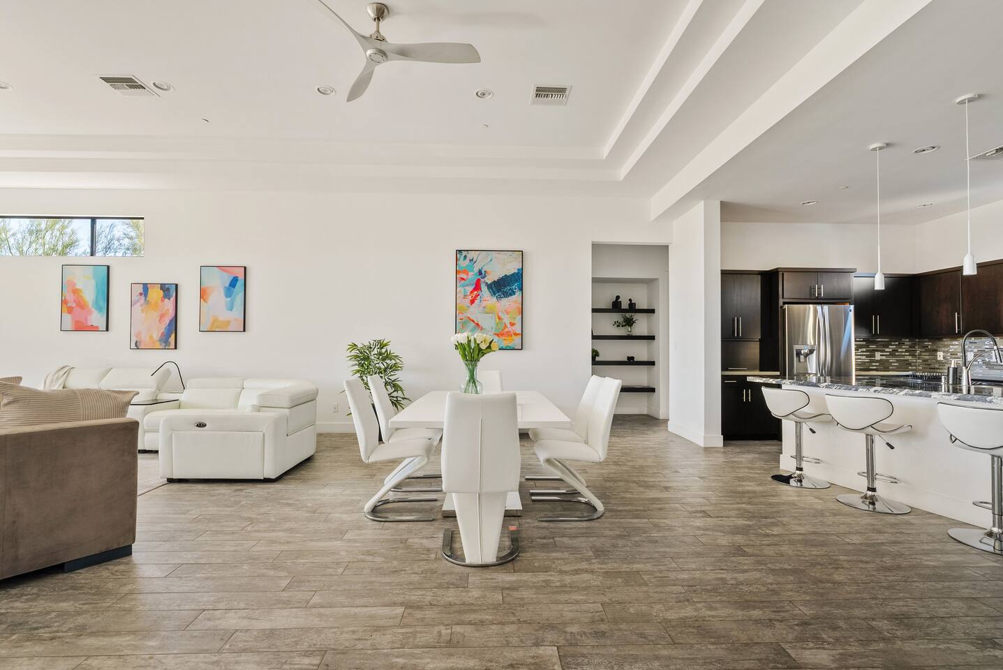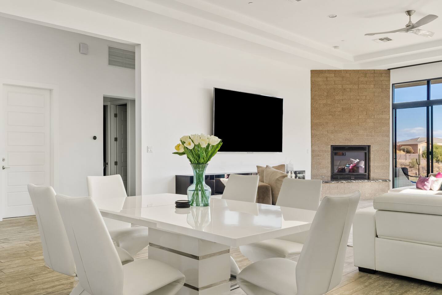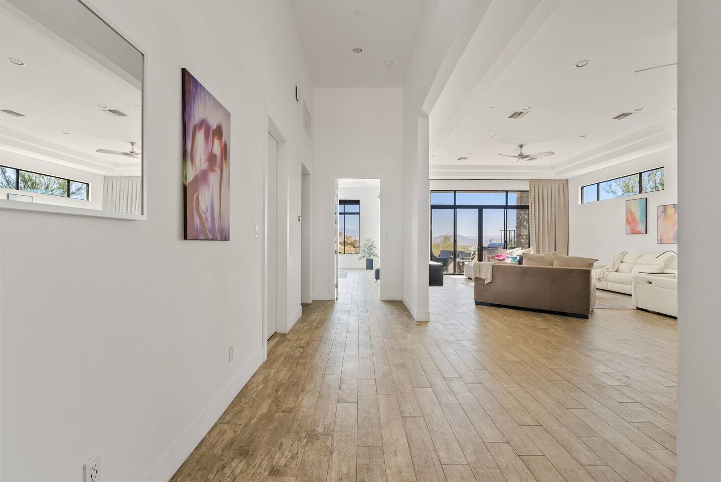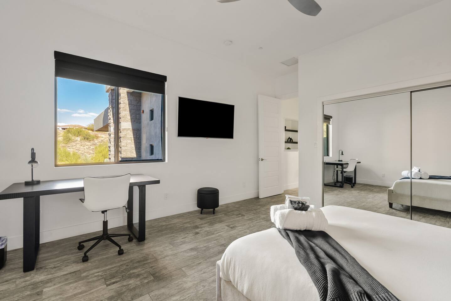 Welcome to your serene desert getaway! This contemporary 3-bedroom, 2.5-bathroom home in beautiful Fountain Hills offers a luxurious escape with breathtaking views of the surrounding mountains and Sonoran desert. Relax, unwind, and enjoy the perfect blend of modern comfort and natural beauty. Only 20 min to Scottsdale, you can also see the fountain hills fountain, one of the world’s tallest man-made fountains. The Space • 3 Spacious Bedrooms: • Master Bedroom: King Bed • Bedroom 2 & 3: Queen Beds • 2.5 Bathrooms: Well-appointed and modern, with plush towels and essential toiletries. • Chef’s Kitchen: Fully equipped with stainless steel appliances, ample counter space, and everything you need to prepare meals. • Living & Dining: Bright, open spaces with contemporary furnishings, perfect for relaxing or entertaining. • Outdoor Oasis: • Sparkling pool for daytime dips and evening swims. • Invigorating cold plunge for ultimate relaxation and rejuvenation. • Spacious patio with comfortable seating and unobstructed views of the desert and mountains. Amenities • High-speed Wi-Fi • Smart TVs in the living room and all bedrooms • Central air conditioning/ mini splits • Washer and dryer Location Highlights Nestled in the heart of Fountain Hills, this home is ideally located for exploring all the area has to offer: • Fountain Park: Just a 5-minute drive to see the world-famous fountain and enjoy walking trails, playgrounds, and picnic areas. • Hiking & Outdoor Adventures: Close to McDowell Mountain Regional Park and the Desert Sonoran Preserve. • Golfing: Tee off at renowned courses like SunRidge Canyon Golf Club and Eagle Mountain Golf Club. • Dining & Shopping: Discover local eateries, boutiques, and galleries in downtown Fountain Hills. • Day Trips: • 20 minutes to Scottsdale for upscale dining and shopping. • 40 minutes to Phoenix Sky Harbor Airport. Why You’ll Love It This home offers the ultimate retreat with its stylish design, peaceful ambiance, and luxurious amenities. Whether you’re looking to explore the desert, relax by the pool, or spend quality time with loved ones, this is the perfect place to call home during your stay. Book now to secure your dates for this unforgettable experience!